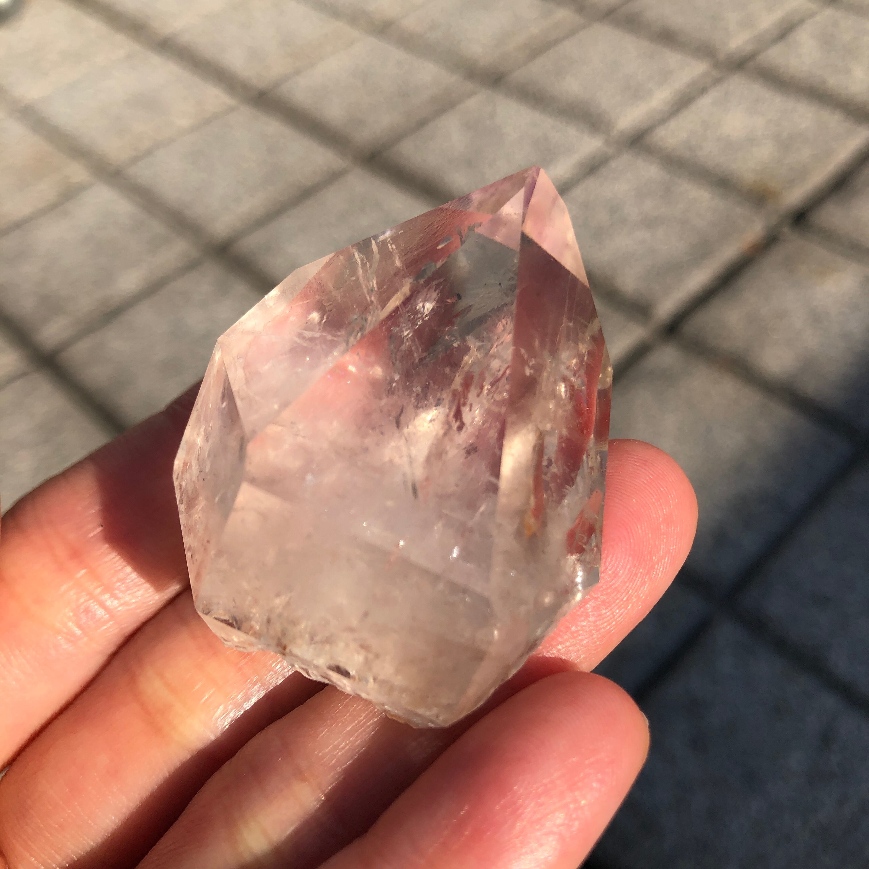 このクリスタルはかなり大き目で、ほんのりトップがラベンダー色。